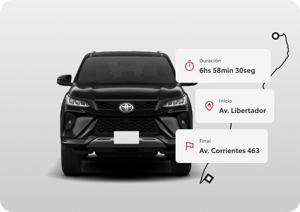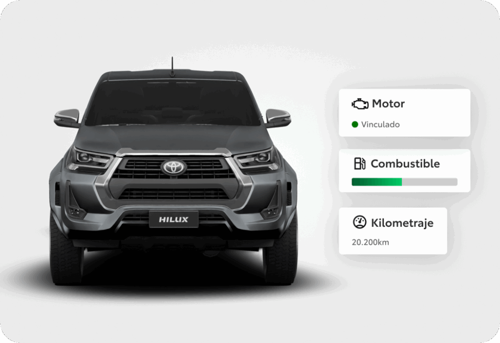 Ahora podrás tener toda la información de tu vehículo a mano a través de la app de Toyota. Monitora el estado del vehículo, controla su seguridad con rastreo, seteo de delimitación geográfica y velocidad máxima. Toda la información que necesitas de forma integrada para mejorar tu experiencia de manejo.